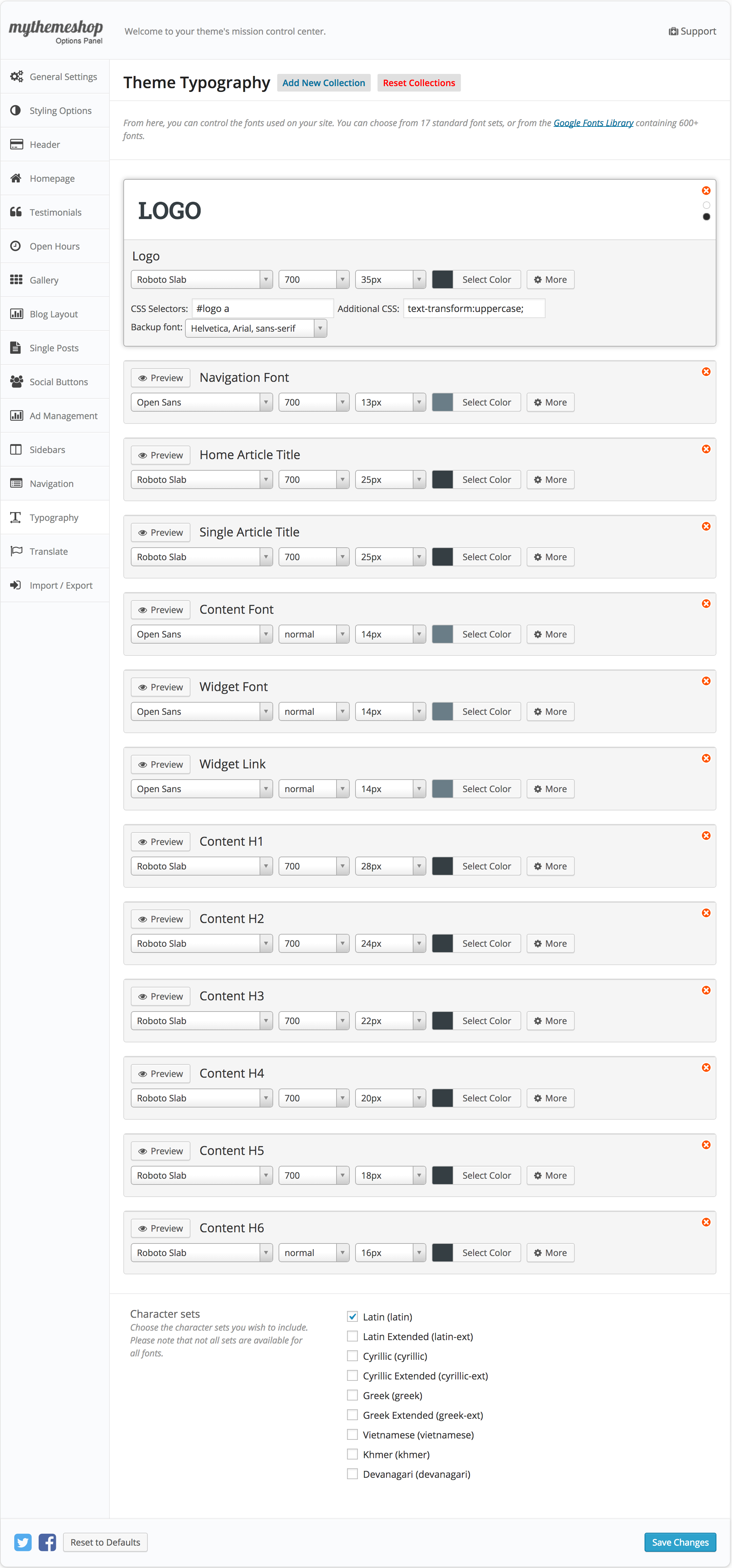 School Typography Settings